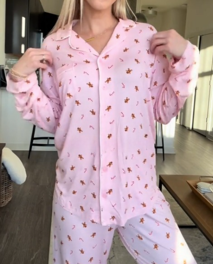 Crafted from ultra-soft, breathable fabric, these candy-cane-printed pajamas keep you cozy, cute, and camera-ready for every festive moment.